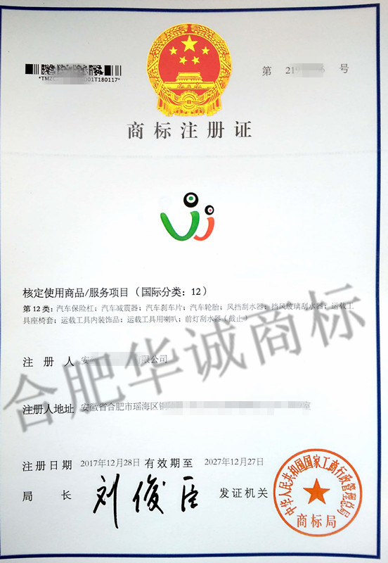 您委托我所代理商标注册申请,名称为“图形” 12类商标注册证已下达。