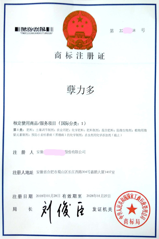 您委托我所代理商标注册申请,名称为“孽力多”1类商标注册证已下达。